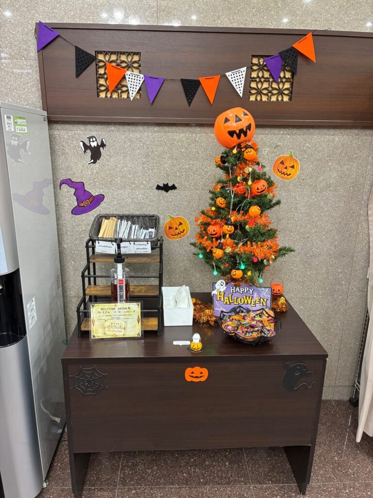 10月下旬~ハロウィン当日にかけてイベントブースにお菓子の木とウェルカムキャンディを設置いたします♪
