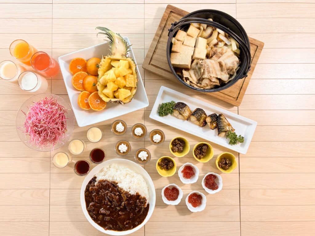 シェフの手作りメニューを含め、盛沢山の朝食メニュー