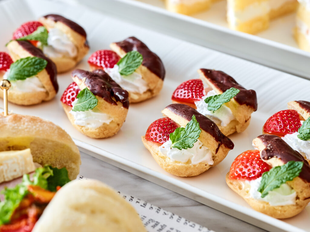 本日のデザート2種/ほうじ茶のヴェリーヌ/抹茶のチーズケーキ/あんず香る濃厚ココアプリン/プチガトー(シュークリーム、エクレア、キャロットケーキ、マドレーヌ等)/カットフルーツ3種/ホテルメイドのスムージー3種