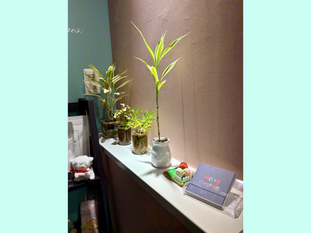 グリーンの壁が落ち着きます。