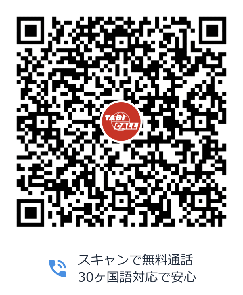 客室にご用意してあるご案内からQRコードを読み取っていただき、開いたページで電話のボタンを押していただくと、お客様の言語が画面上で翻訳され日本人スタッフとの会話をスムーズに行えます。