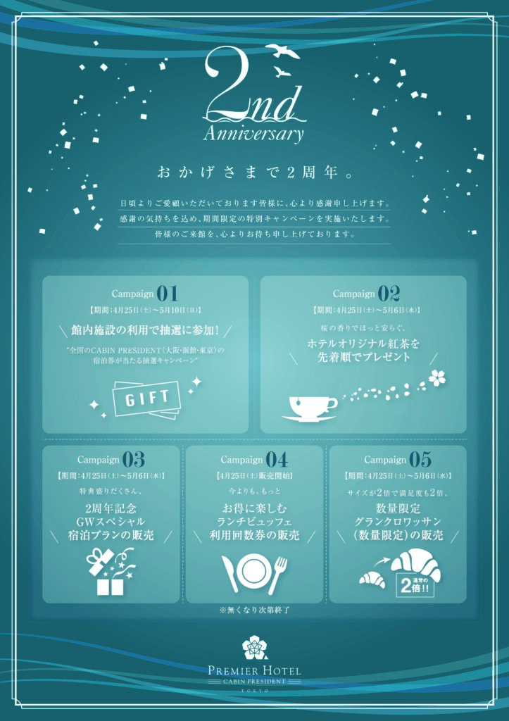 プレミアホテル-CABIN PRESIDENT-東京 「開業2周年キャンペーン」