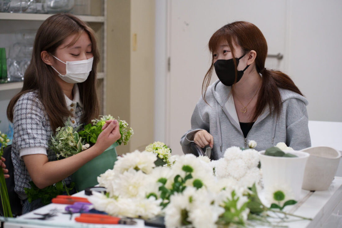 日本の伝統的ないけばなから、現代的なフラワーデザイン、植物学まで幅広く学ぶことができます。また、就職した際に役立つようPhotoshopやillustratorについても学んでいます。