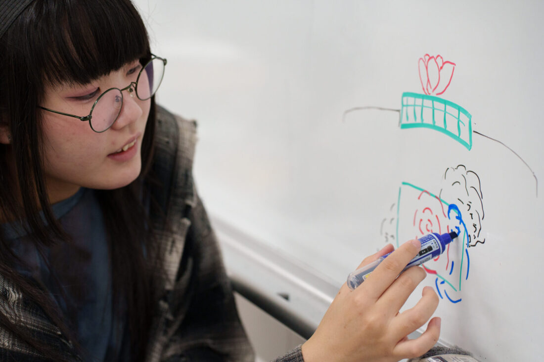 入学したてで人見知りしていた状態から、お互いの意見をしっかり交換しながら制作している姿をみていると成長を感じます。これからも様々な授業を通じて成長していってほしいと思います。