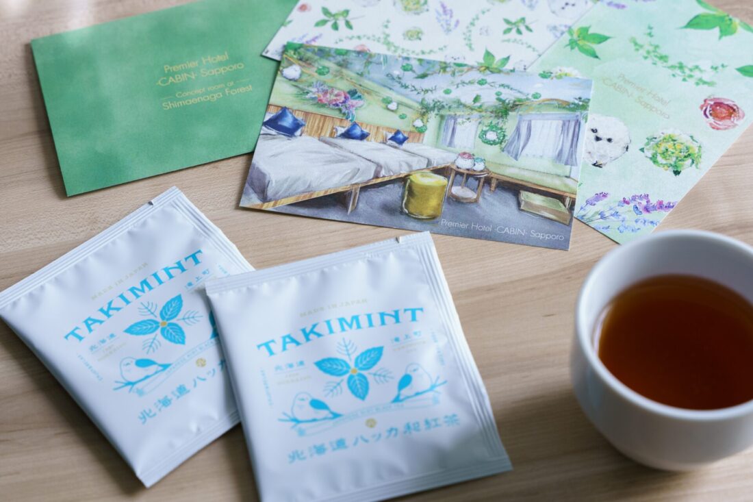ご宿泊特典として、北海道産和ハッカ「JM23」を使用した和紅茶「TAKIMINT」が付いた宿泊プランです。