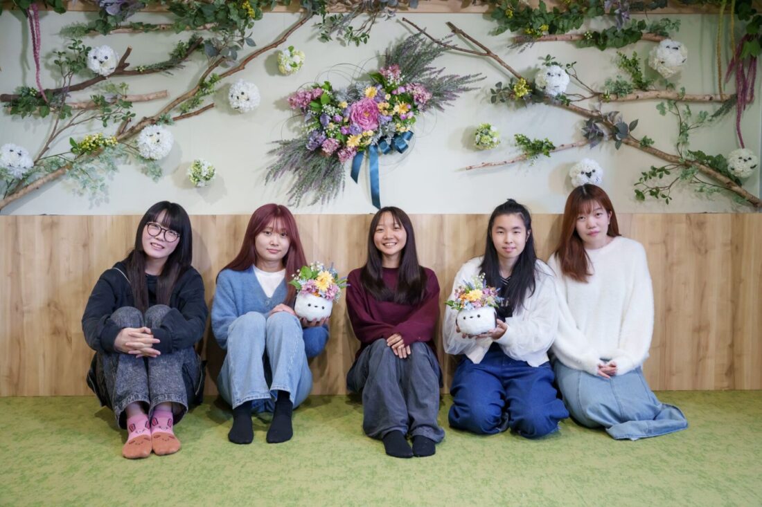 チームで取り組む中で一番楽しかったことは、花材を選びに行ったことです。資材屋に行くのも初めてで、色々なお花や植物があるなかで、先生やチームの仲間と話し合いながらお花の形や色を選ぶのが楽しかったです。苦労したことは、試作品を作ることです。シマエナガの丸みをお花だけで表現するのが難しく、お花の形を変えてみたり、ワイヤーを黒くして足をつけたりと、お花に合わせる素材を考えて工夫しました。